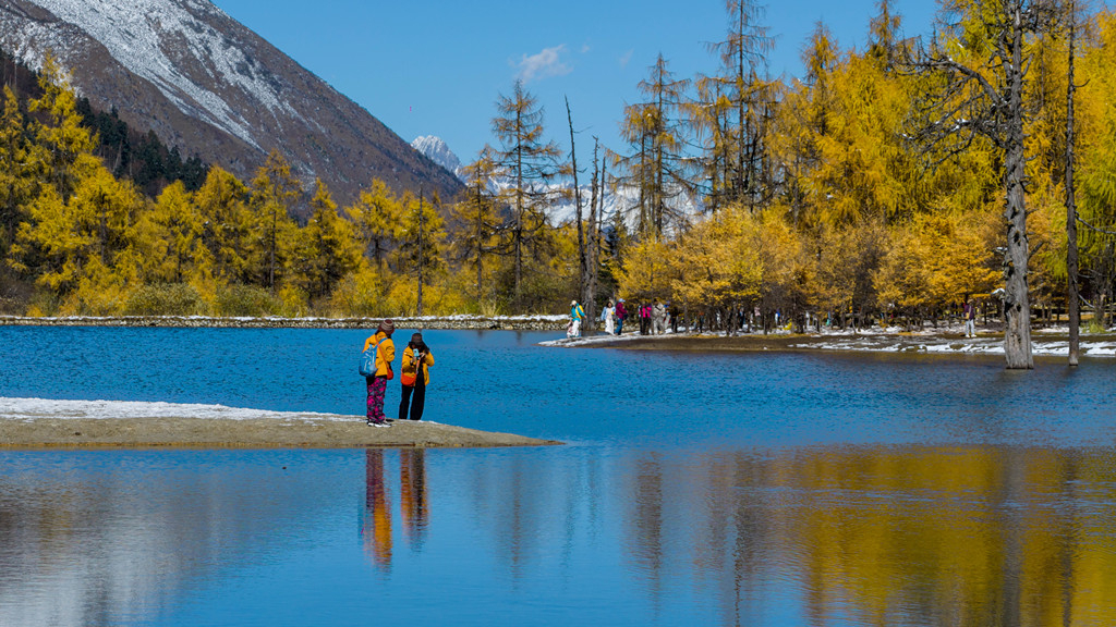 Στις 4 Νοεμβρίου 2025, μετά το χιόνι, ένας γαλάζιος ουρανός αποκάλυψε ένα φθινοπωρινό παραμυθένιο τοπίο στην κοιλάδα Μπιπένγκ, της κομητείας Λι της Αυτόνομης Επαρχίας Σιζάνγκ και Τσιανγκ των Άμπα στην επαρχία Σιτσουάν. Χρωματιστά δάση, χιονισμένα βουνά και ένας μπλε ουρανός που αντανακλάται στα κρυστάλλινα νερά, προσελκύοντας πλήθος τουριστών.