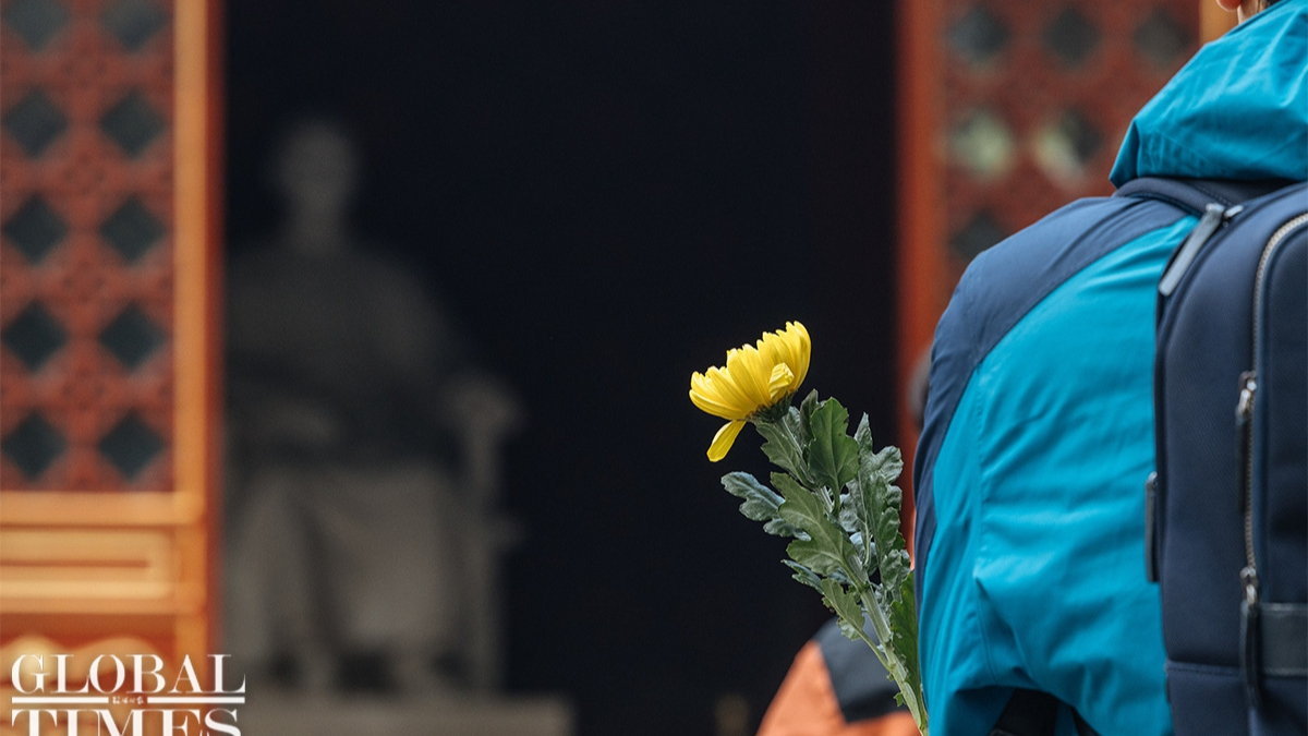 Επισκέπτες συγκεντρώθηκαν στην Αίθουσα Μνήμης του Σουν Γιατ-Σεν στο ναό Μπιγιούν που βρίσκεται στο Σιανγκσάν του Πεκίνου, για να καταθέσουν λουλούδια στο άγαλμα του Σουν Γιατ-Σεν και να αποδώσουν φόρο τιμής καθώς και να επισκεφθούν την έκθεση που παρουσιάζει τη ζωή του.