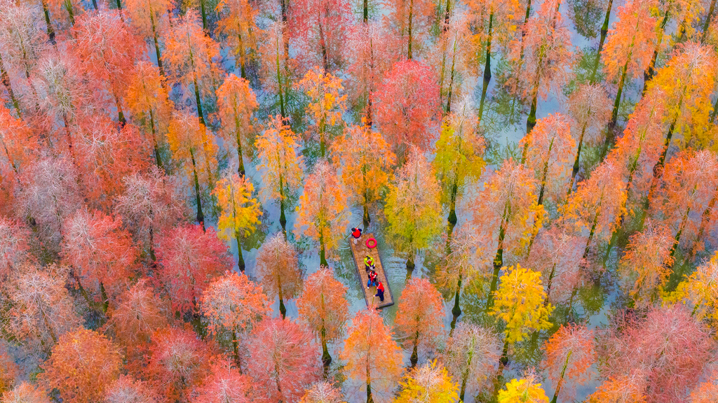 Στις 9 Νοεμβρίου του 2025, το πανέμορφο δάσος της υγρής περιοχής της λίμνης Χονγκχέ στο Σιχόνγκ του Τζιανγκσού, εισήλθε τώρα στο τέλος του φθινοπώρου στην καλύτερη τουριστική περίοδο. Όλο το δάσος, τυλιγμένο σε ένα κόκκινο μανδύα, έχει προσελκύσει ένα μεγάλο αριθμό επισκεπτών, που φτάνουν ως εκεί γοητευμένοι από το φυσικό σκηνικό.