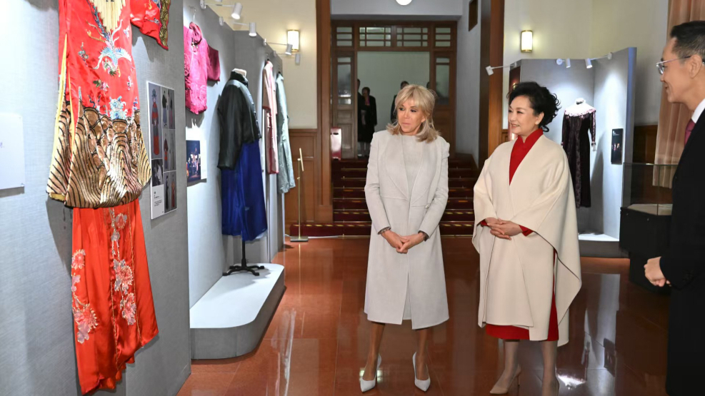Η Πενγκ Λιγιουάν και η Μπριζίτ Μακρόν επισκέπτονται το Θέατρο Λαϊκής Τέχνης του Πεκίνου