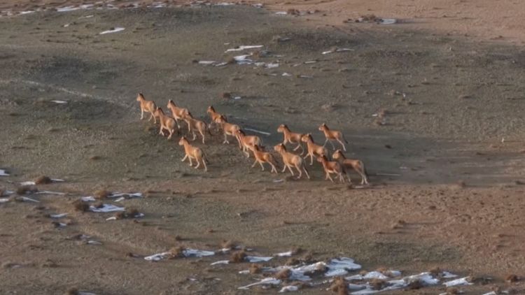 Τα απειλούμενα άγρια γαϊδούρια της Μογγολίας περιφέρονται στην έρημο Γκόμπι του Σιντζιάνγκ