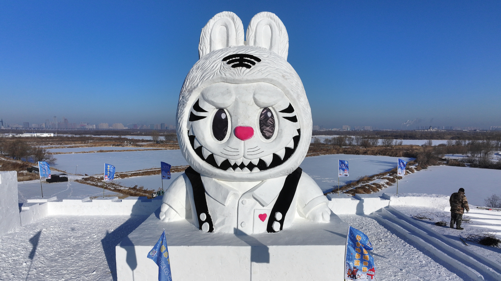Το Labubu συναντά γιγάντιο χιονάνθρωπο στο χειμερινό αξιοθέατο του Χαρμπίν
