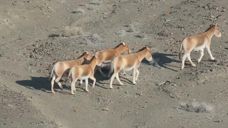 Μογγολικοί άγριοι γάιδαροι ταξιδεύουν ομαδικά στο Σιντζιάνγκ