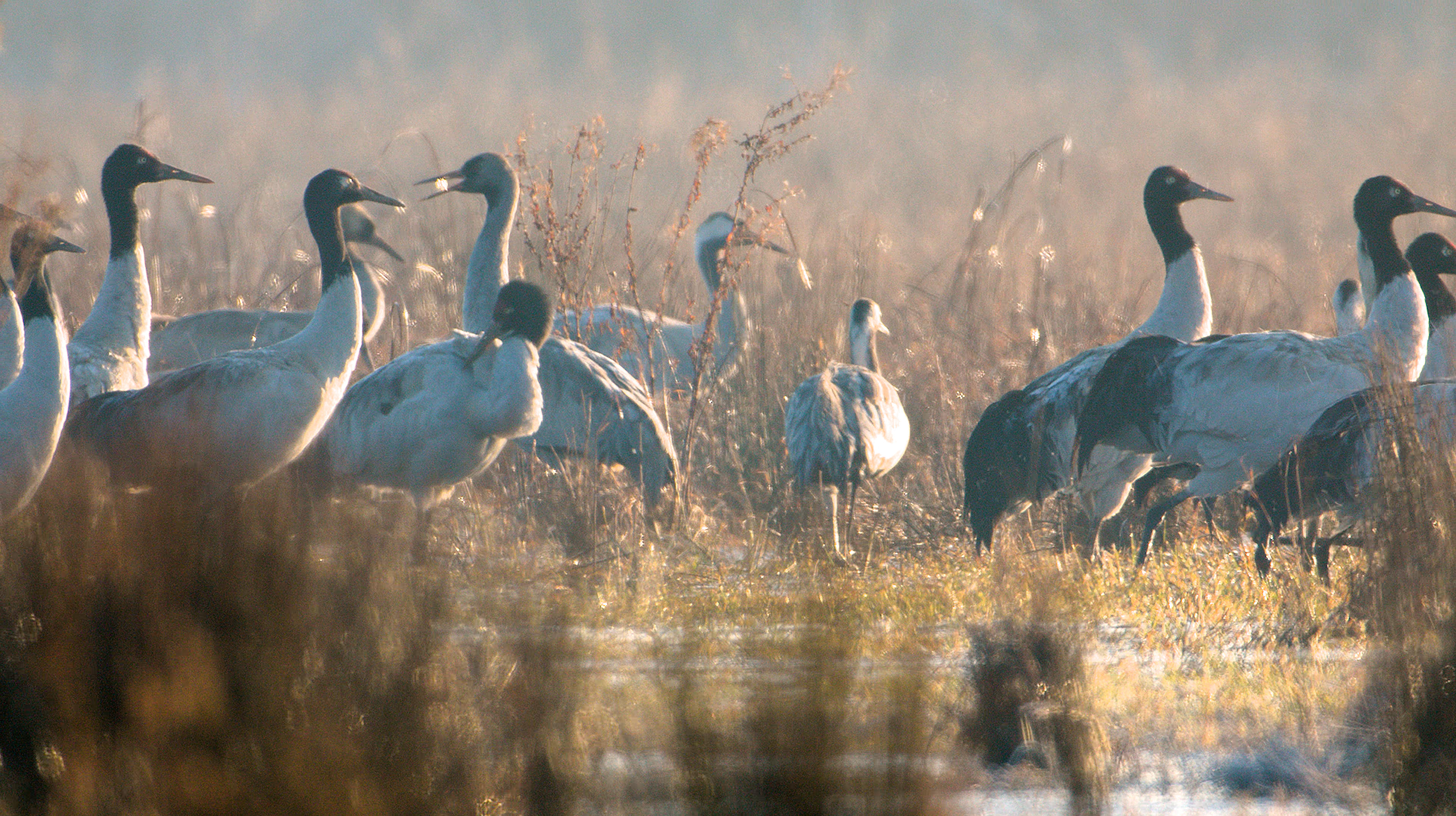 2.898 μαυρολαίμιοι γερανοί διαχειμάζουν στο Εθνικό Φυσικό Καταφύγιο Τσαοχάι στην ΝΔ Κίνα, αριθμός ρεκόρ