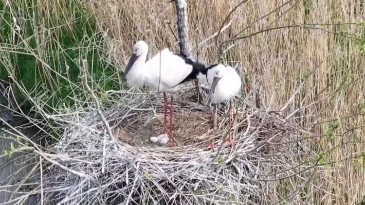 Νεοσσός του απειλούμενου είδους πελαργού της Ανατολής εκκολάπτεται στη λίμνη Ντονγκτίνγκ