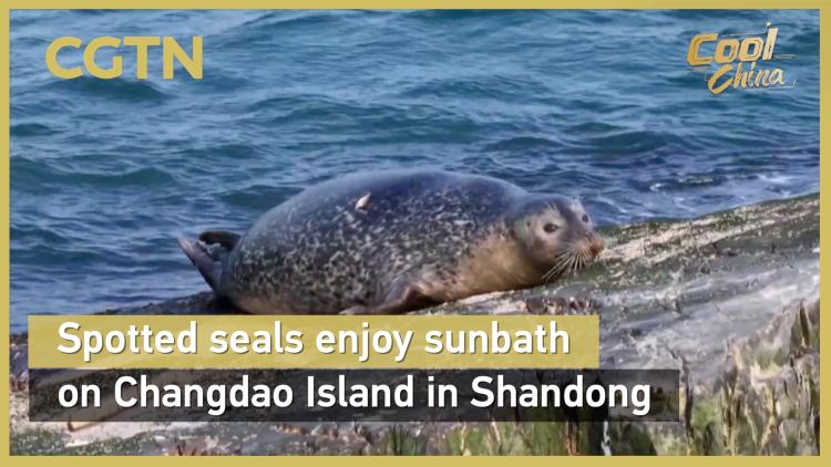 Οι κηλιδωτές φώκιες απολαμβάνουν τον ήλιο στο νησί Τσανγκντάο της επαρχίας Σαντόνγκ