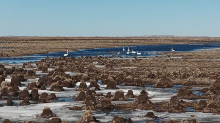 Ο πάγος λιώνει στη λίμνη Χουλούν καθώς τα αποδημητικά πουλιά επιστρέφουν στη βόρεια Κίνα