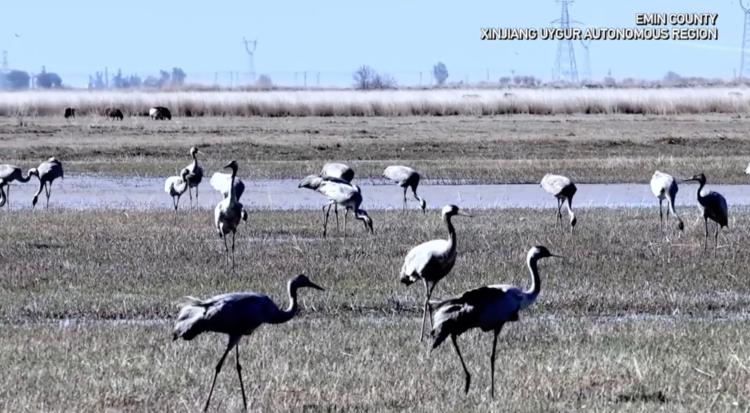 Η μετανάστευση των γκρίζων γερανών κορυφώνεται στο Σιντζιάνγκ
