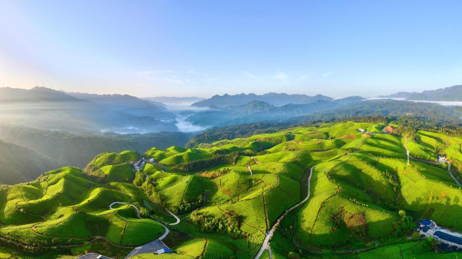 Γραφικό βουνό με καλλιέργειες τσαγιού στο Χουμπέι της Κ.Κίνας